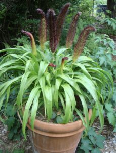 Full sun to partial shade. 24 to 30 inches tall. More compact than Jester or Purple Majesty, Jade Princess is suitable for use in containers as well as in the landscape. Chartreuse leaves (the more sun they get the darker the foliage will become) are topped by sturdy, pollenless plumes.