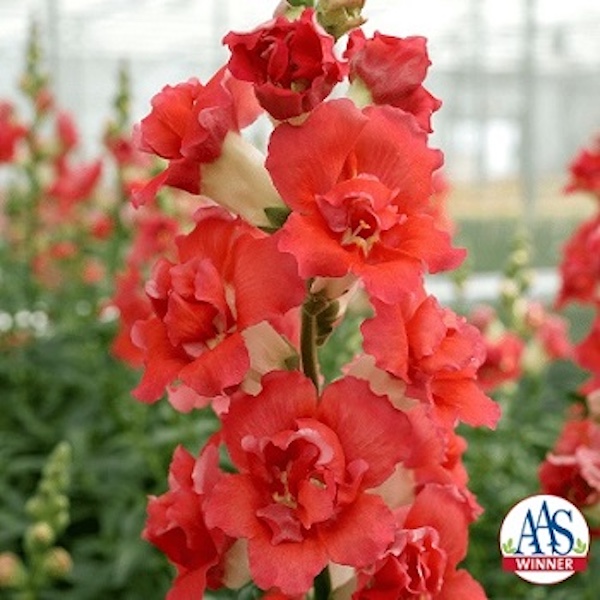 Sun to partial shade. Height to 24 inches. The Double Shot line of snapdragons brings season long vigor and beauty to your borders and containers. Grow it as a bedder or a cut flower. Double Shot orange has open faced double flowers in shades of orange and orange-red. Double Shot has been bred for strong stems and heavy flower production.