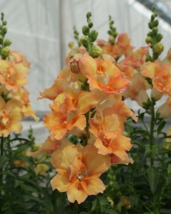 Sun to partial shade. Height 18 inches. The Double Shot line of snapdragons brings season long vigor and beauty to your borders and containers. Grow it as a bedder or a cut flower. Double Shot peach has open faced double flowers in shades of pink with a touch of yellow. Double Shot has been bred for strong stems and heavy flower production.