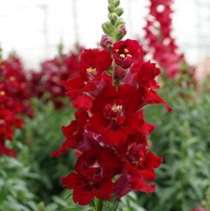 Sun to partial shade. Height 18 inches. The Double Shot line of snapdragons brings season long vigor and beauty to your borders and containers. Grow it as a bedder or a cut flower. Double Shot red has open faced double flowers that will ‘wow’. Double Shot has been bred for strong stems and heavy flower production.